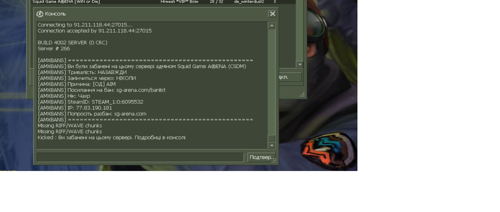 прошу Вас розглянути ДЕМО, тому що не можу зрозуміти причину бану. Чітами не користуюсь взагалі. Неможу завантажити демо, але можу скинути на файлообмінник чи може на почту.